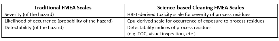 Table 2: Comparison of Traditional FMEA Scales to Cleaning FMEA Scales