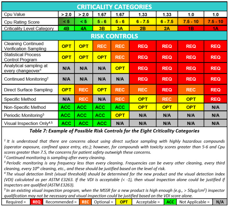 The authors (ASTM Cleaning Standards Team) believe the Shirokizawa criticality matrix and the risk reduction and risk control tables derived from the Shirokizawa criticality matrix described in this article are a significant step forward in the science-based, risk-based, and statistics-based initiatives of the E55 ASTM Pharmaceutical Standards for cleaning. The authors also believe that this approach fits perfectly with the intent of the recently issued ICH Q9 (R1).