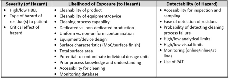 If pharmaceutical and medical device manufacturing is to advance to a science- and risk-based approach to cleaning, the scales for severity, occurrence, and detectability used in FMEAs for cleaning must be justified using scientific principles, process knowledge, and statistics. There is a variety of information associated with cleaning that might be considered to evaluate the severity, occurrence (likelihood), and detectability criteria and create scientifically derived and objective scales. Table 1 lists some information that might be considered during an FMEA/FMECA.