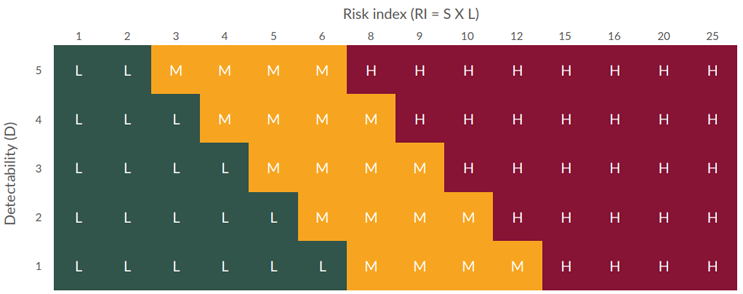 Key: D – Detectability, L – Likelihood, S – Severity.