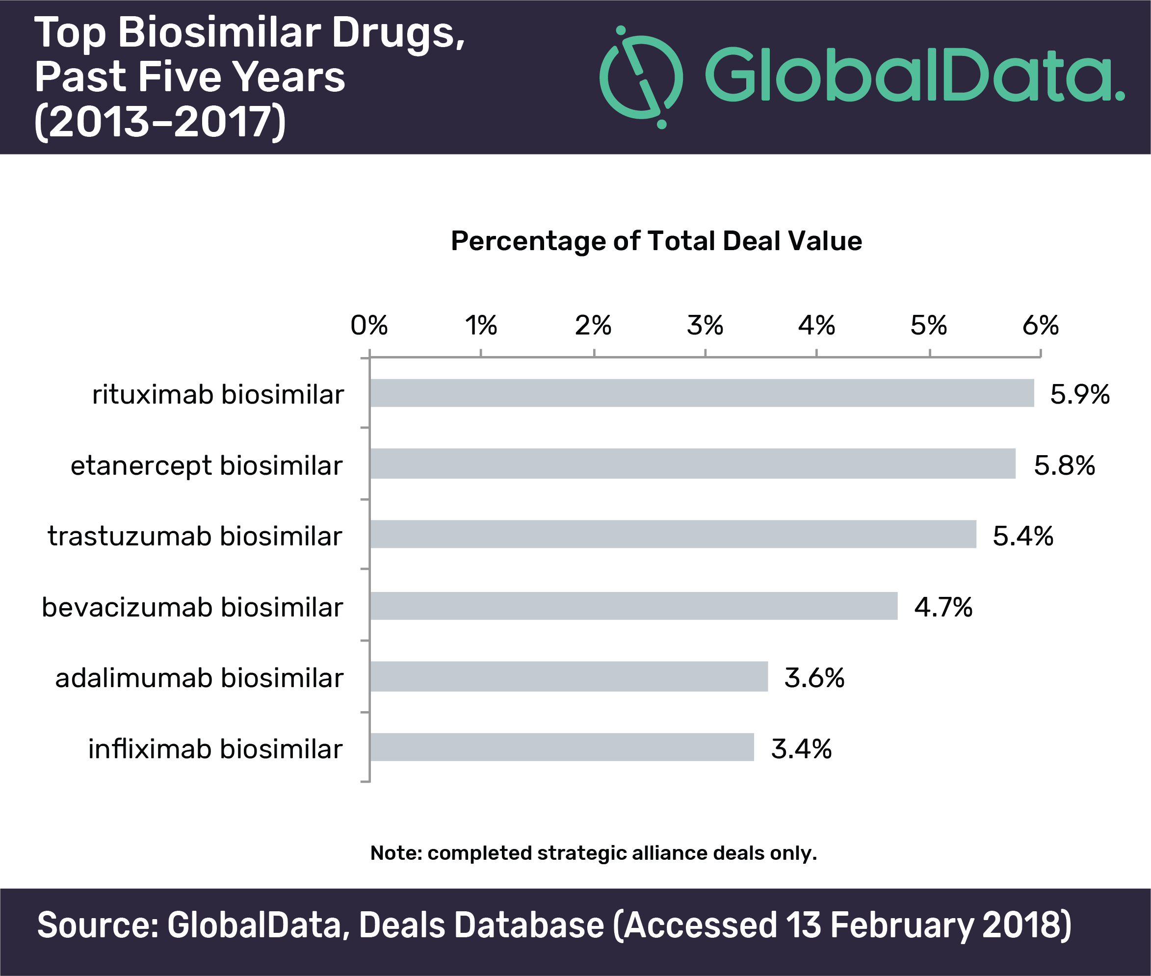 Healthcare Analyst at GlobalData commented, “The deal activity can provide a useful indication of which biosimilar drugs are in development. The recent strategic alliance deals show the potential of bringing these biosimilar monoclonal antibodies to market for therapy areas such as cancer or autoimmune diseases.”