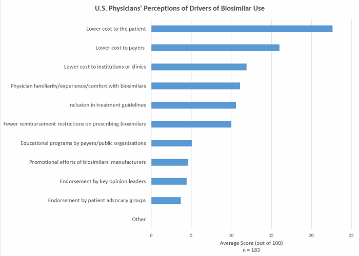 CMS originally introduced the idea of including all biosimilars under the same HCPCS code in order to stimulate a competitive biosimilar market, and, as discussed, it certainly would have encouraged competitive pricing (though potentially to the eventual detriment of some manufacturers). However, giving each biosimilar its own HCPCS code removes some of the pressure for biosimilars to drop their prices as low as they may have gone because they are no longer jostling for position within one reimbursement group. While pricing competition between biosimilars is still likely to be competitive as they vie for inclusion on payer formularies, the drivers for increased prescribing of biosimilars will really come when cost savings are passed on to patients via lower copays, something that physicians in the United States have reported is not generally the case.