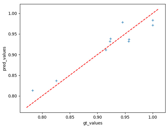 Figure 2: Predicted versus measured values of dynamic binding capacity (DBC) from wash and equilibration data using a fine-tuned image classification network.