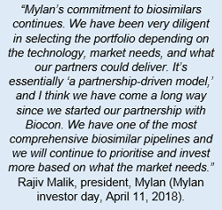 At a recent investor day presentation, Mylan president Rajiv Malik highlighted the importance to the company of focusing on biosimilars. With multiple strategic alliances under Mylan’s belt, Malik emphasized that the company is positioning itself as a “partner of choice” regarding biosimilars.