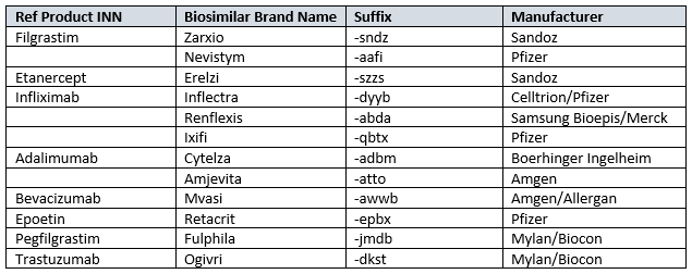 Table 1: Approved Biosimilars And Their Nomenclatures7