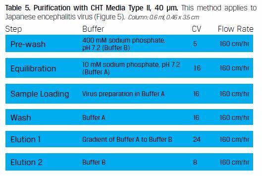 In this case study, ceramic hydroxyapatite media is used for purification of a wide variety of mammalian viruses (Table 1). Viral activity was determined using the assays shown in Table 2. Chromatography using ceramic hydroxyapatite media is simple, easily scalable, and results in a concentrated preparation of highly active virus.
