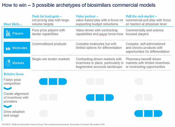 Figure 1: Three possible archetypes for biosimilar commercial models are emerging.